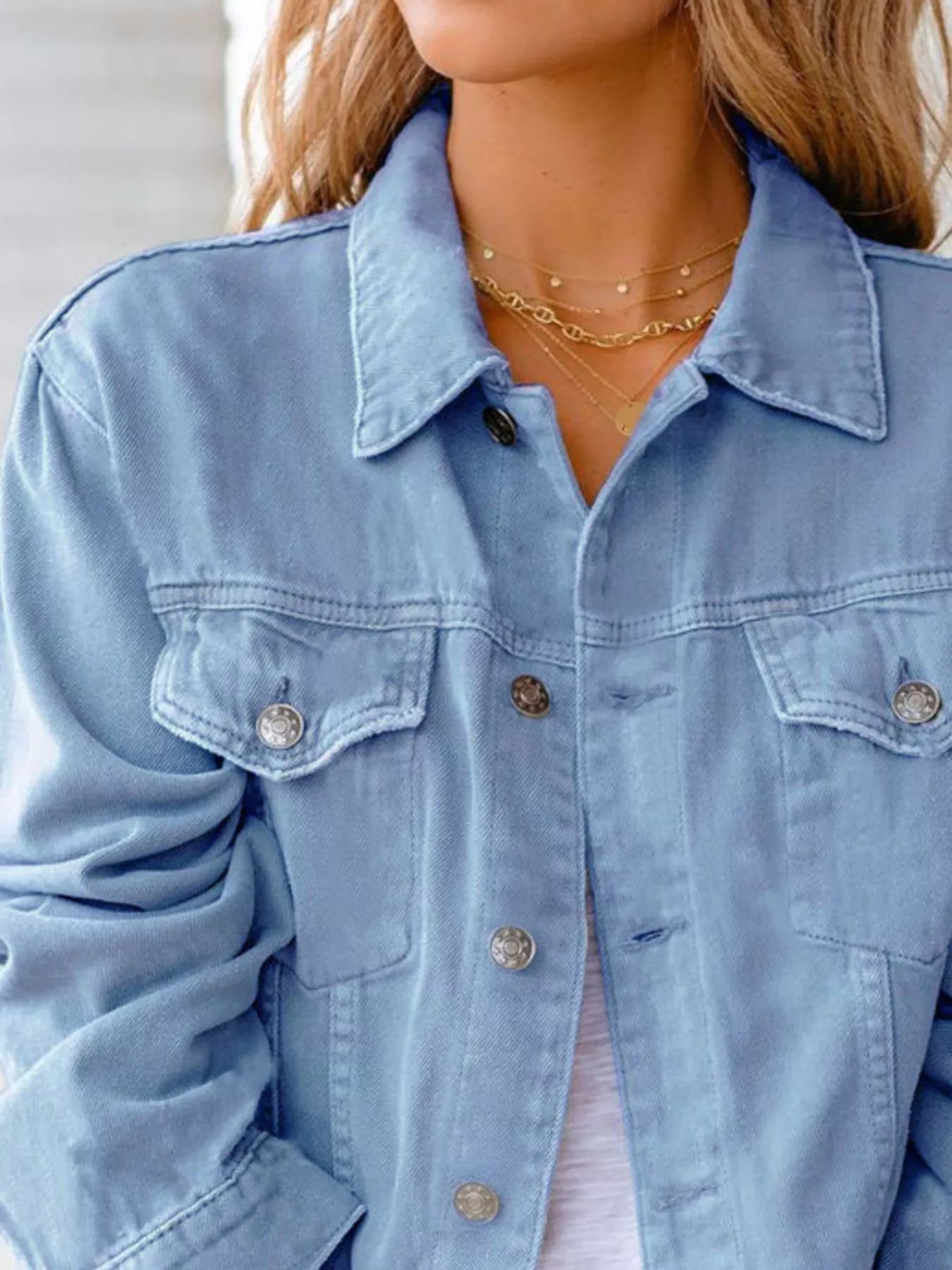 Stay stylish and comfortable with our Button Up Long Sleeve Denim Jacket. Designed for modern women, this piece blends chic design with everyday versatility.