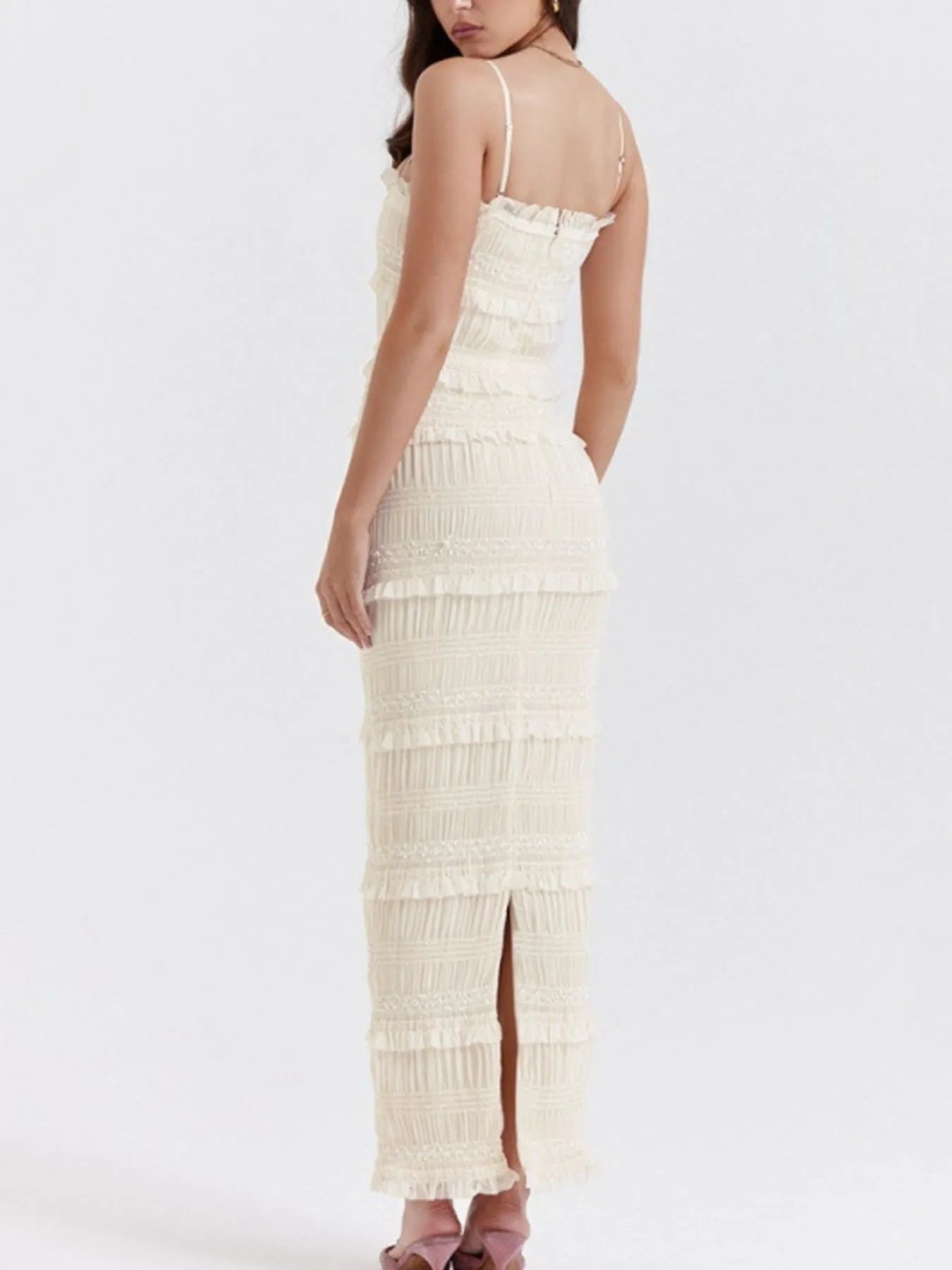 Introducing our Boho Frill Tiered Maxi Cami Dress – a textured treasure designed to flatter your silhouette. This maxi-length dress features delicate frill tiers and a lightweight, textured fabric that moves gracefully with every step. Adjustable spaghetti straps allow you to customise your fit, while the flowing shape flatters all body types. Perfect for garden parties, brunch dates or seaside strolls, this dress brings elegance and ease to your wardrobe.