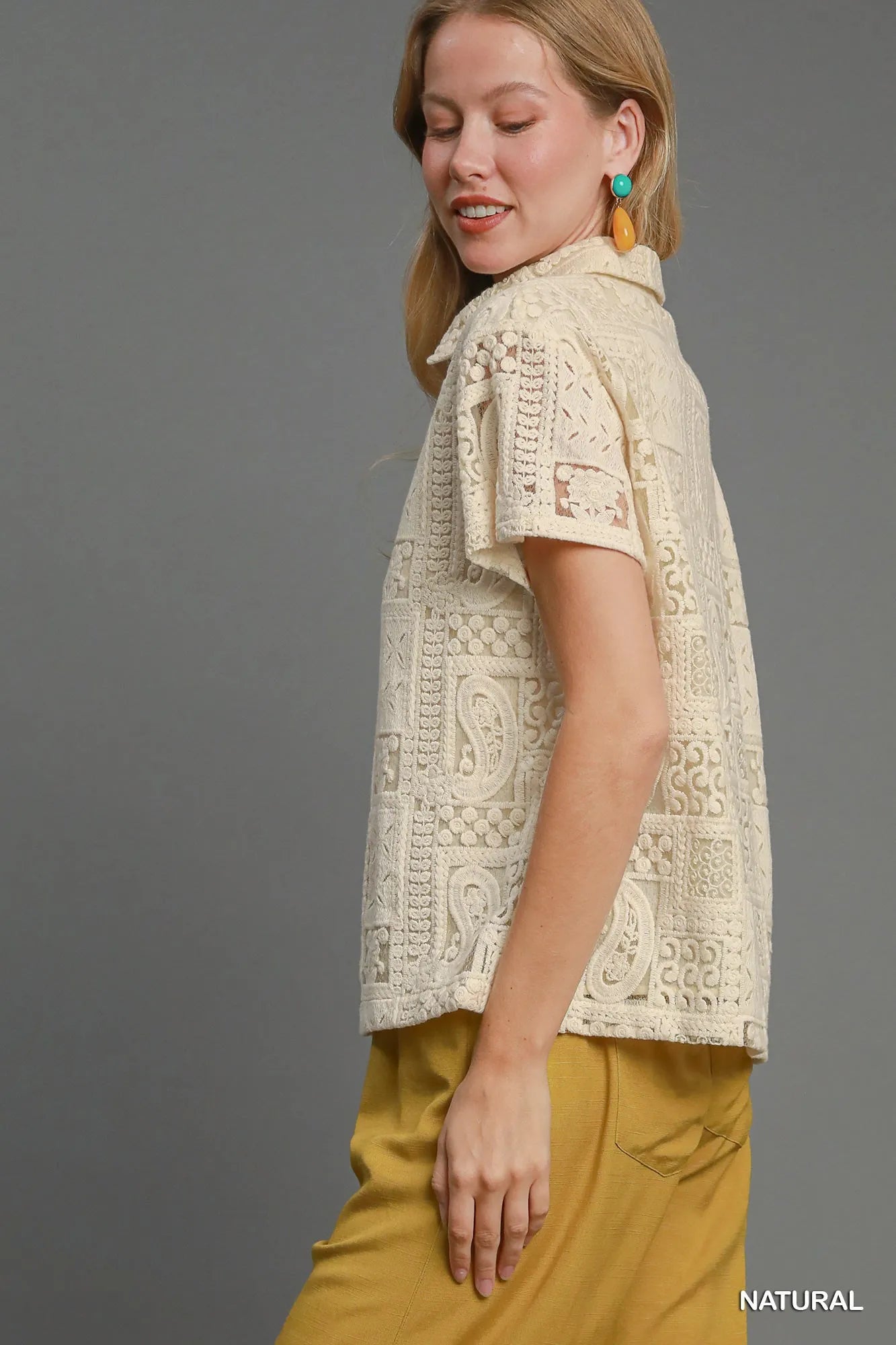 Shop the Umgee Patch Lace Short Sleeve Button Down Shirt today—your go‑to women’s fashion piece that blends comfort, quality, and effortless style.