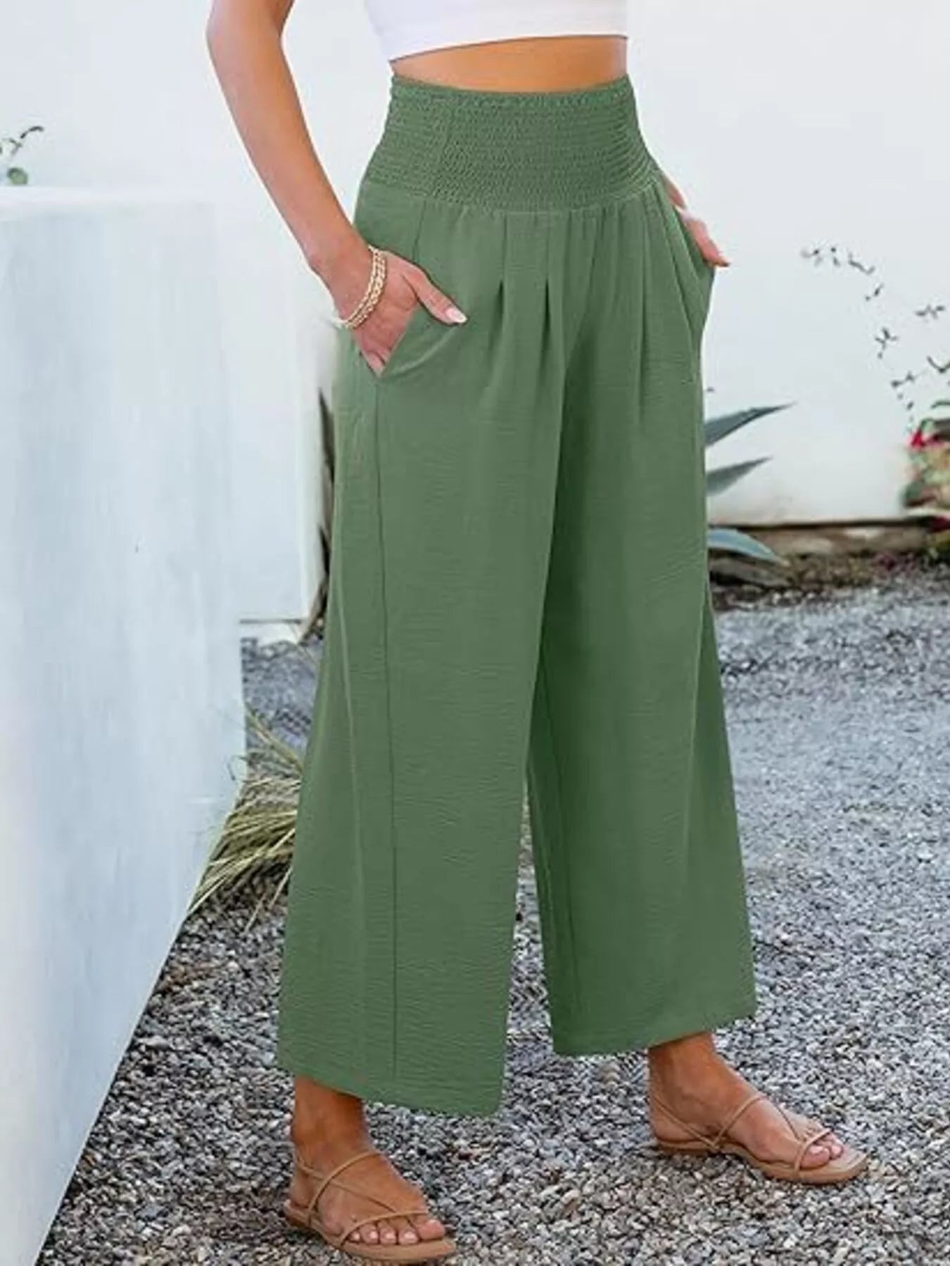 Shop the Wide Leg Smocked High Waist Pants today—your go‑to women’s fashion piece that blends comfort, quality, and effortless style.